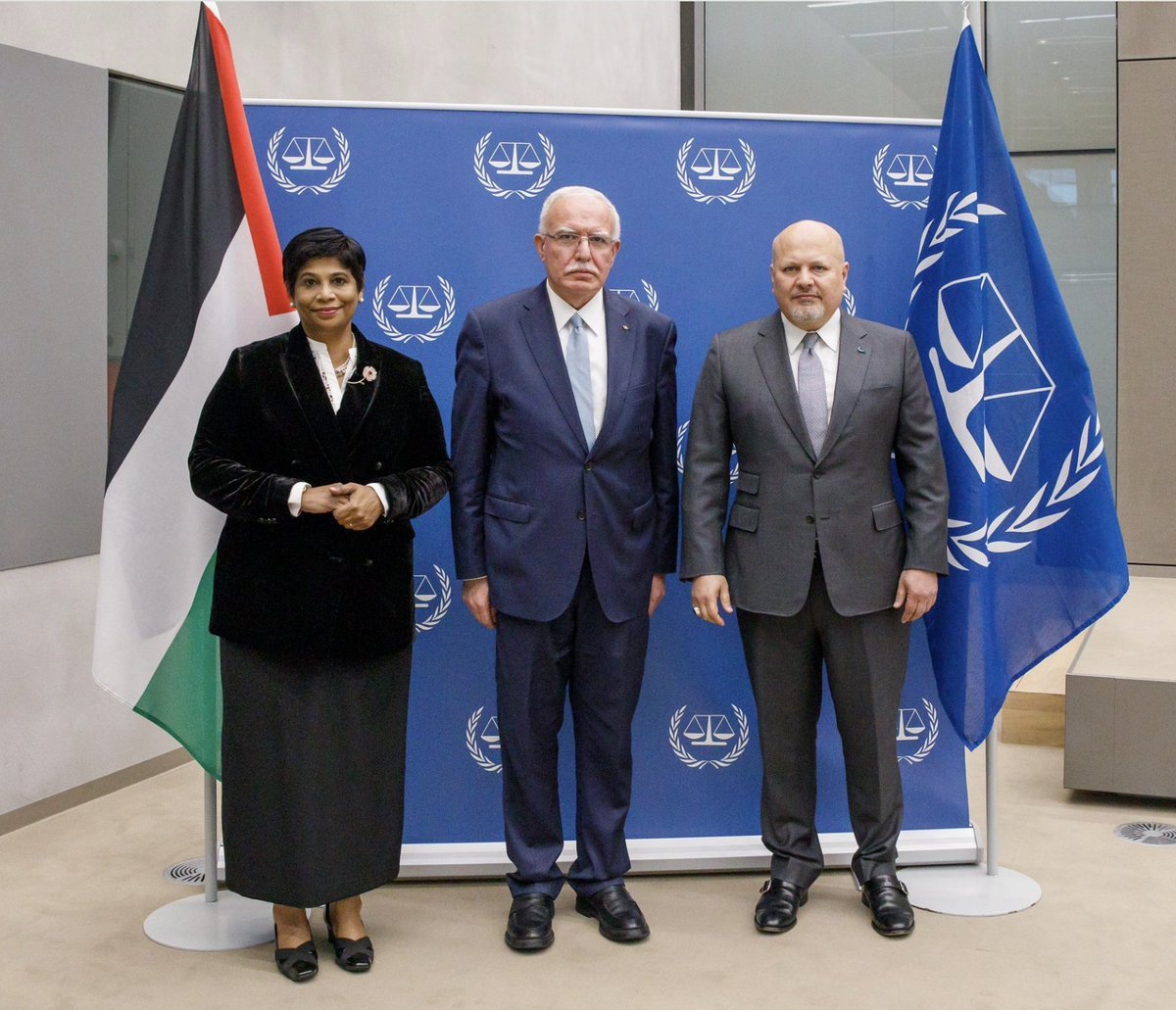 6/ After she abused her UNHRC presidency to appoint rabid Israel haters to the perpetual commission of inquiry targeting Israel, Nazhat Shameem Khan became ICC Deputy Prosecutor. Here she is meeting with PLO foreign minister Riad Malki during his visit to the ICC in June 2022.