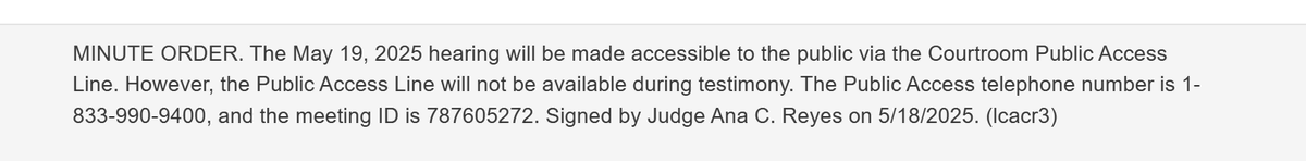 16/ Weird. My line just clicked and I couldn't hear anything. I called back and it said I was entering the meeting but no sound. I wonder if the court screwed up and left the testimony on the line. If so, it was a good thing for transparency because it revealed how thoughtful Trump Administration is being, how much waste there is, and how biased judge is!!! I'm staying on line to see what develops!
