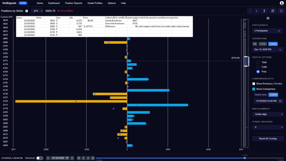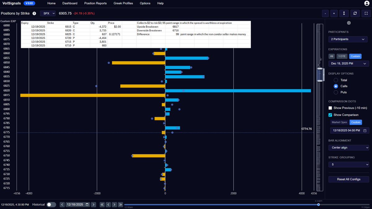 The first trade involved selling the Dec 19th 6715 6720 Put Spread with the Dec 19th 6815 6820 Call Spread ~ 4,400 times and collecting $2 to do so (risking a loss of $3)