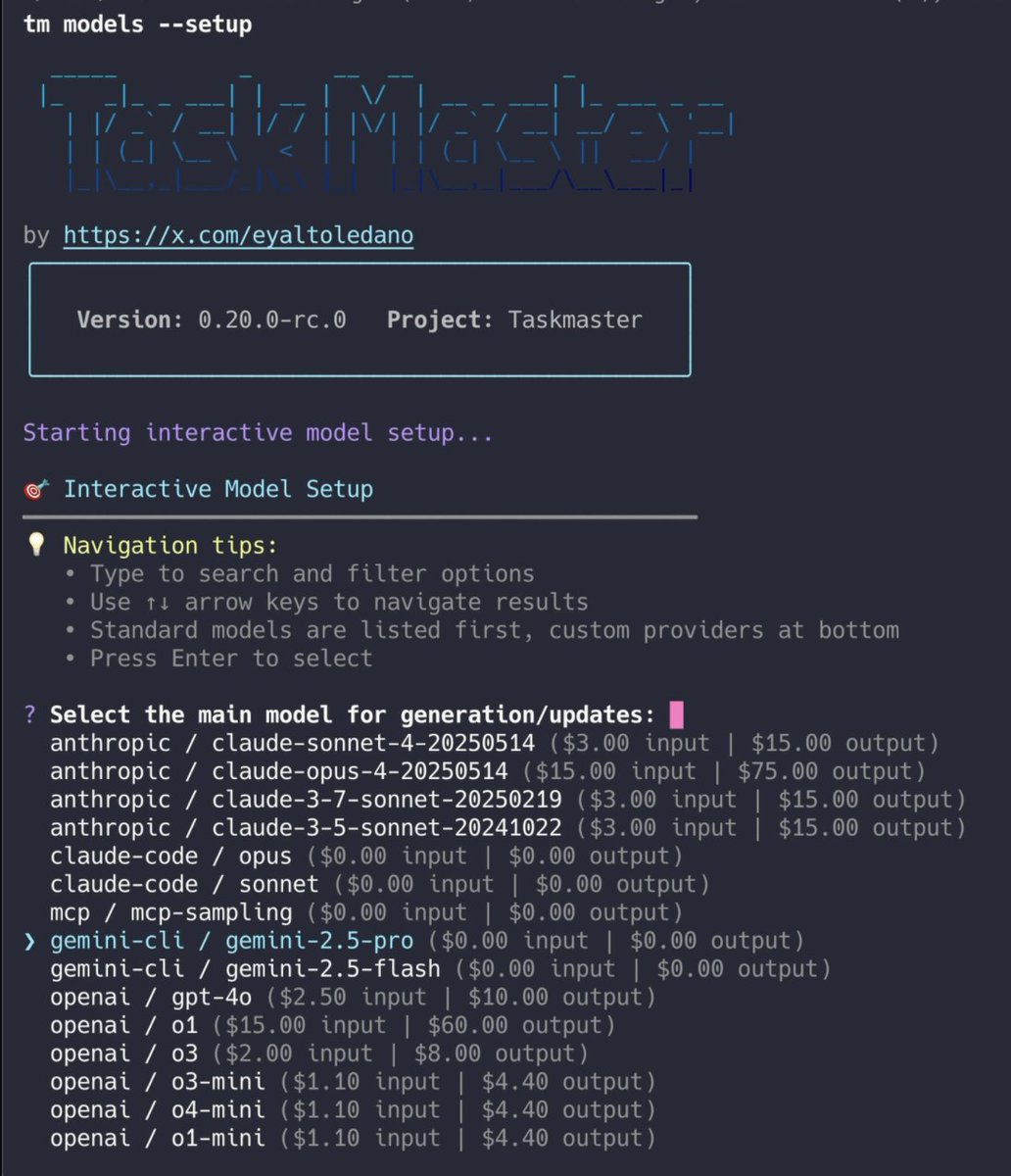 our #1 feature request is fulfilled. you can now use taskmaster with 200+ models across 6 ai providers, with many more on the way. full cli + mcp support.