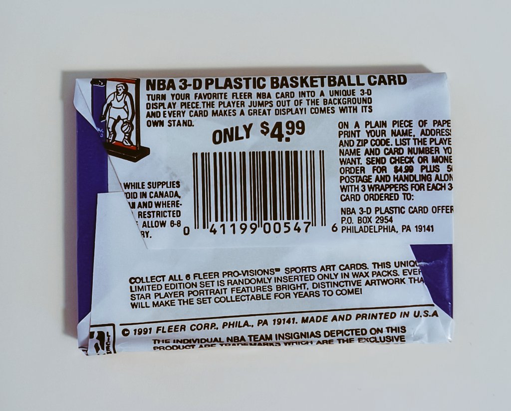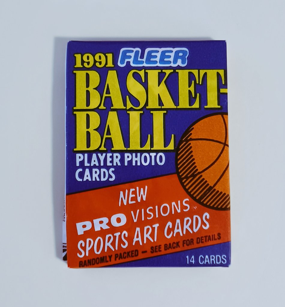 The layout of '90-91 Skybox may seem old fashion next to modern Basketball cards but really makes the player's action jump off the card.