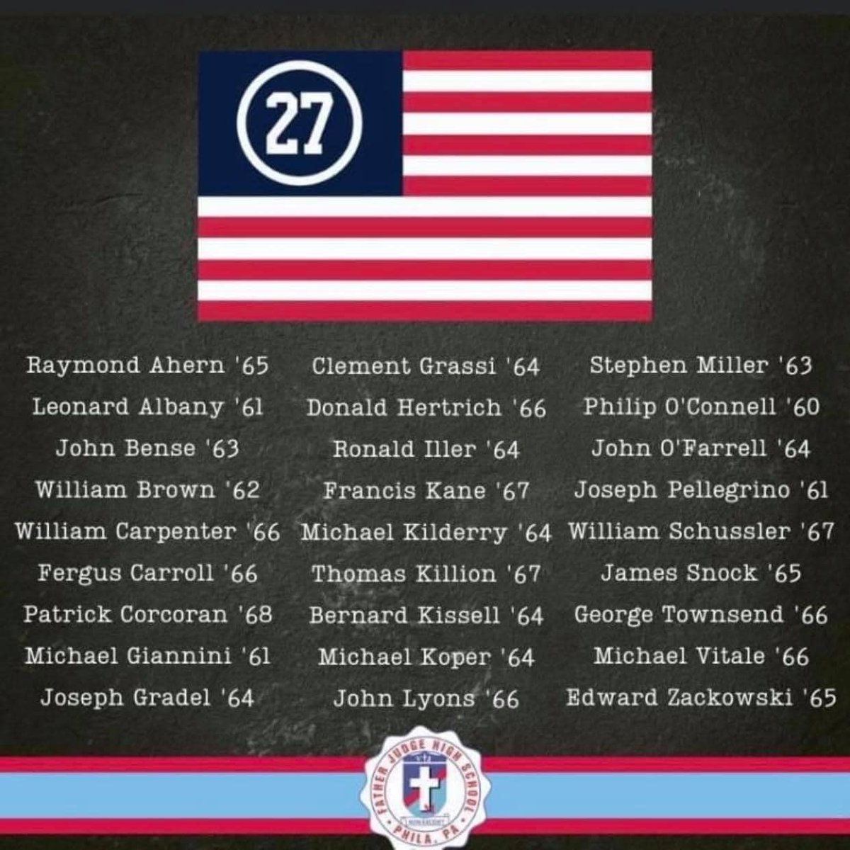 As a @FatherJudgeHS graduate I have a very specific sense of patriotism when it comes to Vietnam War Veterans. My HS has the most casualties of any Catholic HS in the nation. I walked past and read the names of the “27” every day from the age of 12 and I touched their names in the granite. I stood guard when the @TheMovingWallHC was in town as a young man.