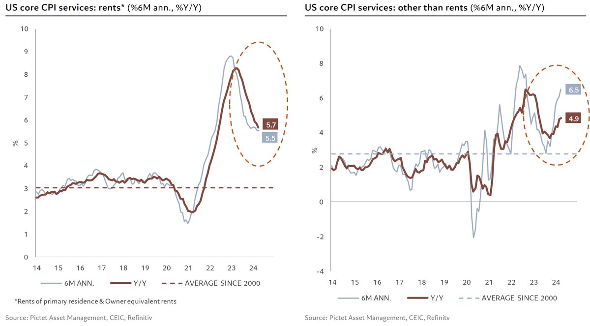 3/ The fall in services inflation to 5.0% stems from both the continued decline in rental inflation and, for the 2nd month in a row, in services inflation excluding rents, which fell from 5.5% to 4.7% over 6 months on an annualized basis. The best news for the Fed