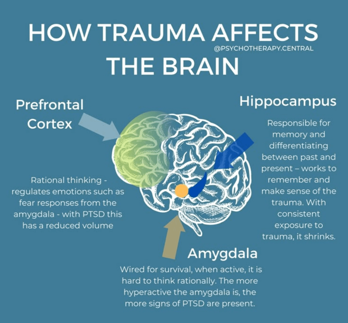 • Trauma rewires your brain’s threat systems