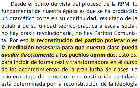 La lucha de dos líneas en torno al Balance, el proceso de reconstitución ideológica, es la únia vía para volver a situar al Comunismo como horizonte emancipador de todos los pueblos y a la nueva Internacional y sus secciones como sujeto creador del mundo nuevo.