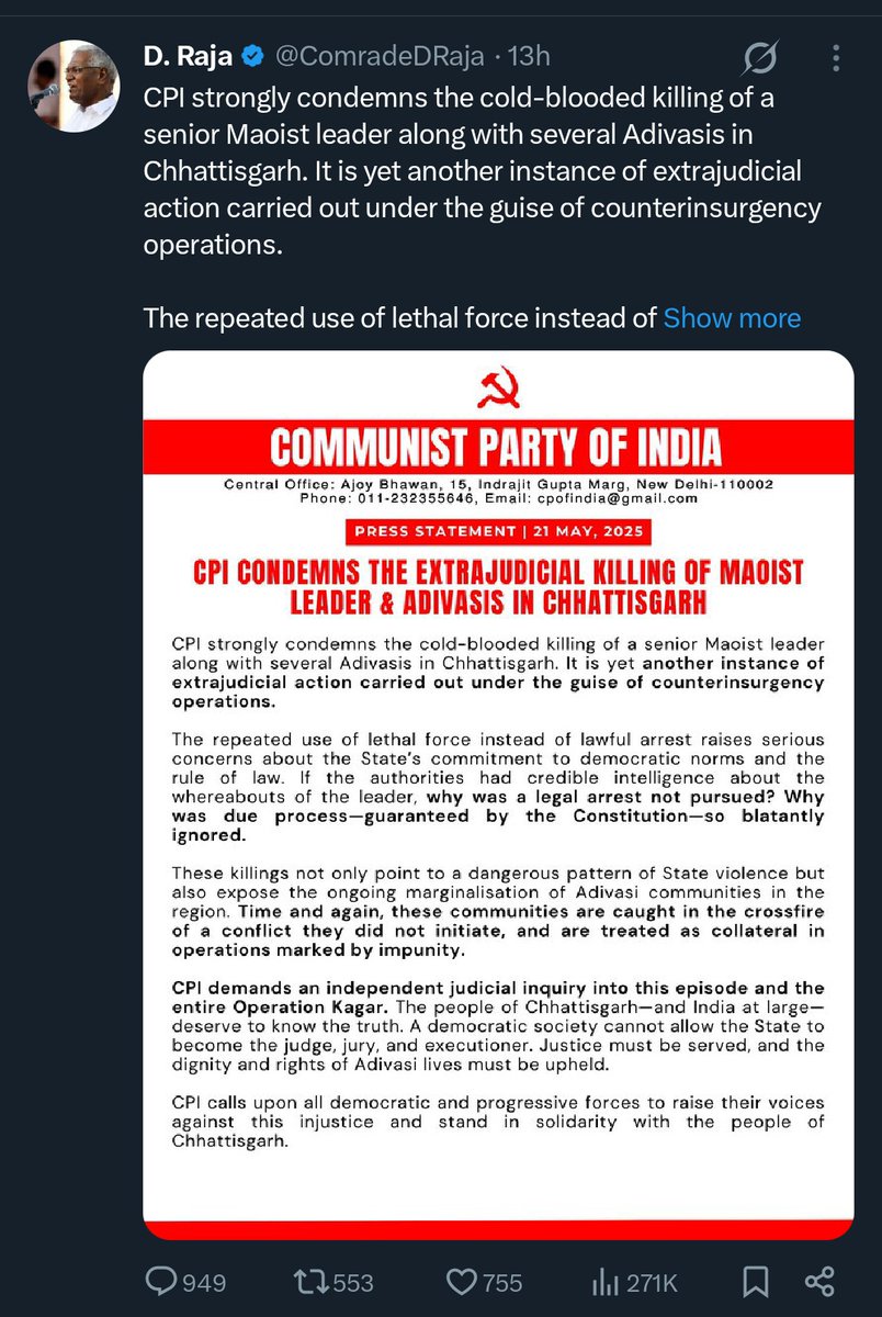 8. Leftists have already started their RR to make a hero out of Naxal terrorism.