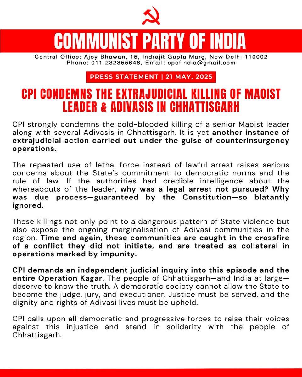 1. Bharat Rashtra Samithi (BRS). Former Chief Minister K Chandrashekar Rao condemned Operation Kagar as ‘state-sponsored violence’ during a May 2 public meeting.
