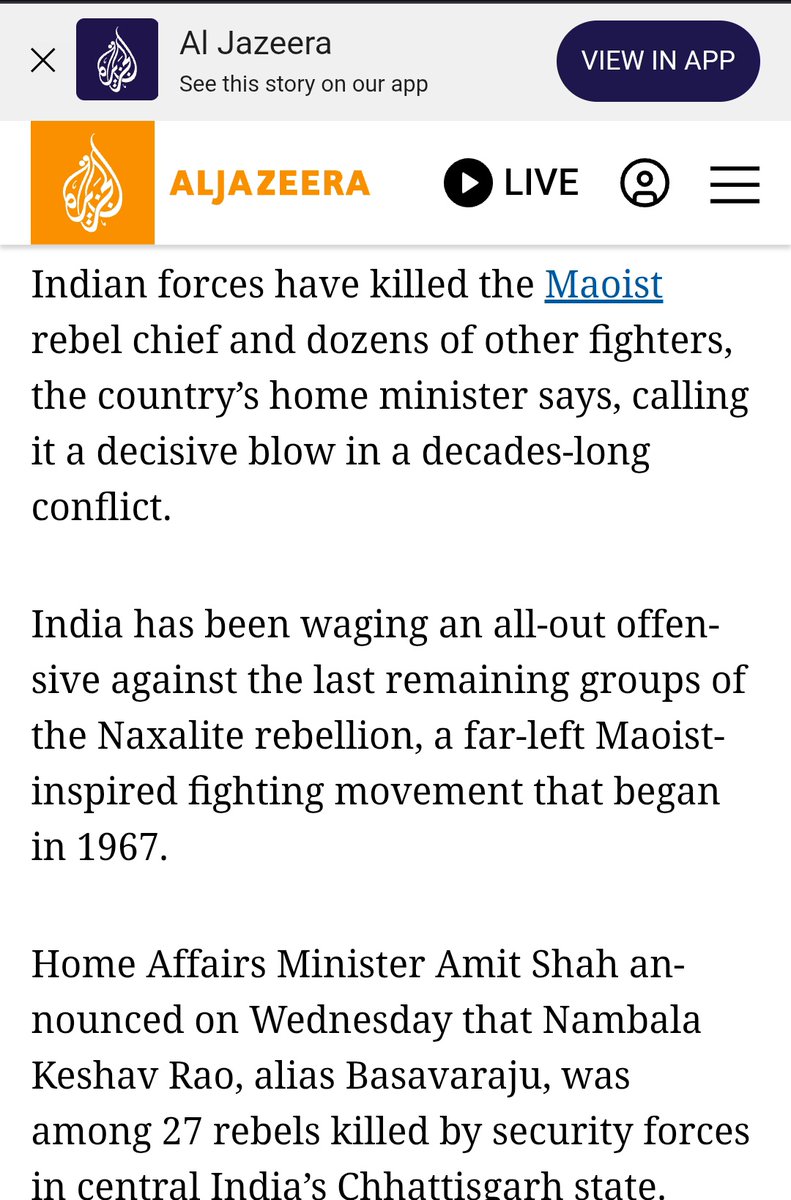 13. This is how islamic terrorvpropaganda portal Alzazeera describes Basavaraju as a leftist Rebel!!