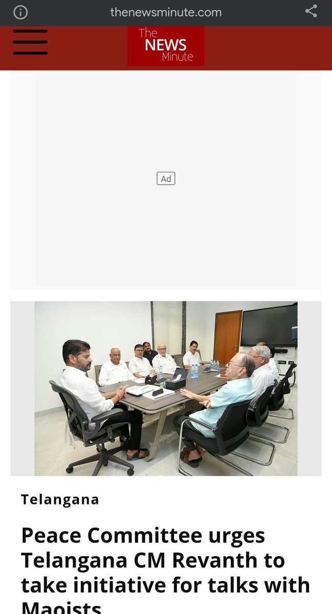 2. The Peace Talks Committee on April 27, appealed to Telangana Chief Minister A Revanth Reddy to take the initiative for peace talks between the Union Government and the Maoists.