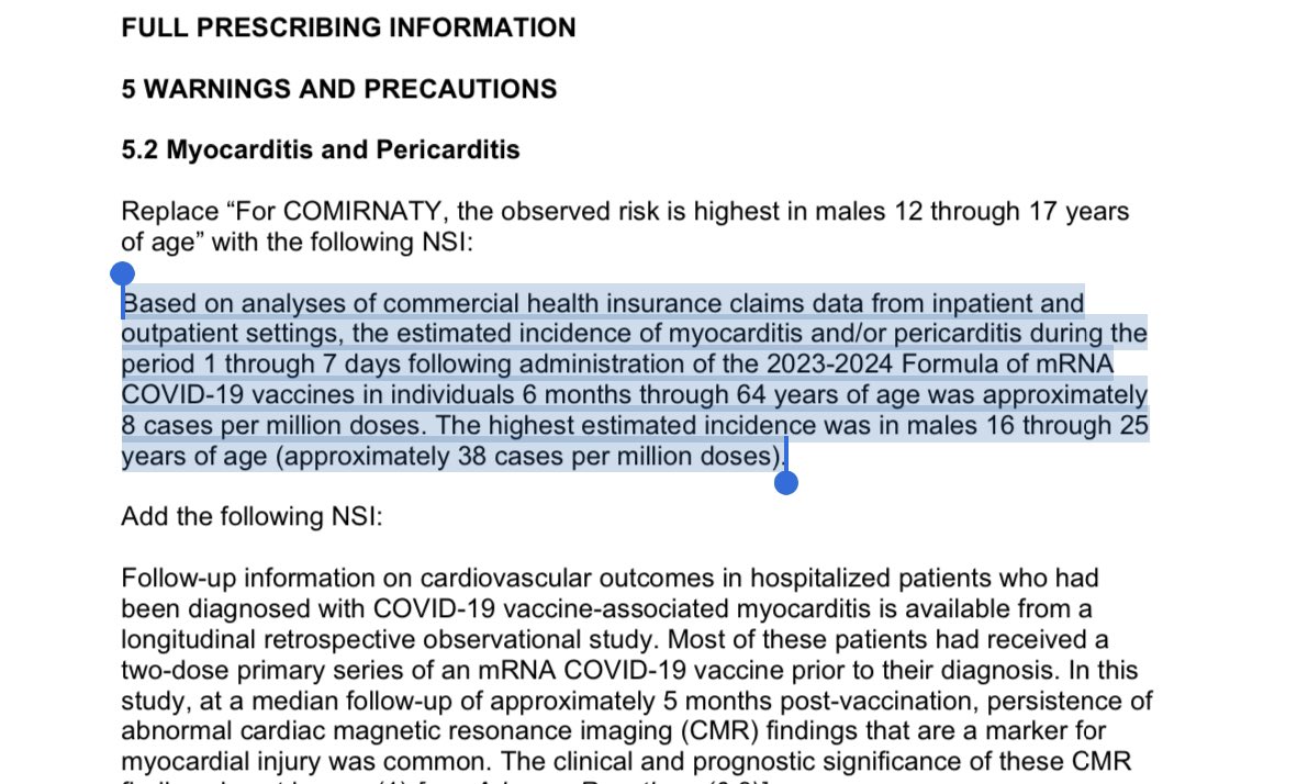 They reaffirmed a rate of 8 cases per million doses of myocarditis with the 2023–2024 formulations.