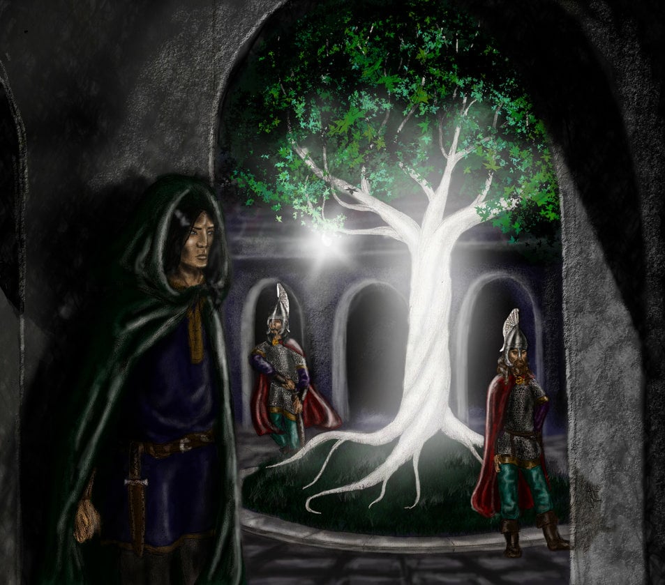 Gondor's tree descends from a sapling of Nimloth, a tree that once stood in Númenor at the height of human civilization.
