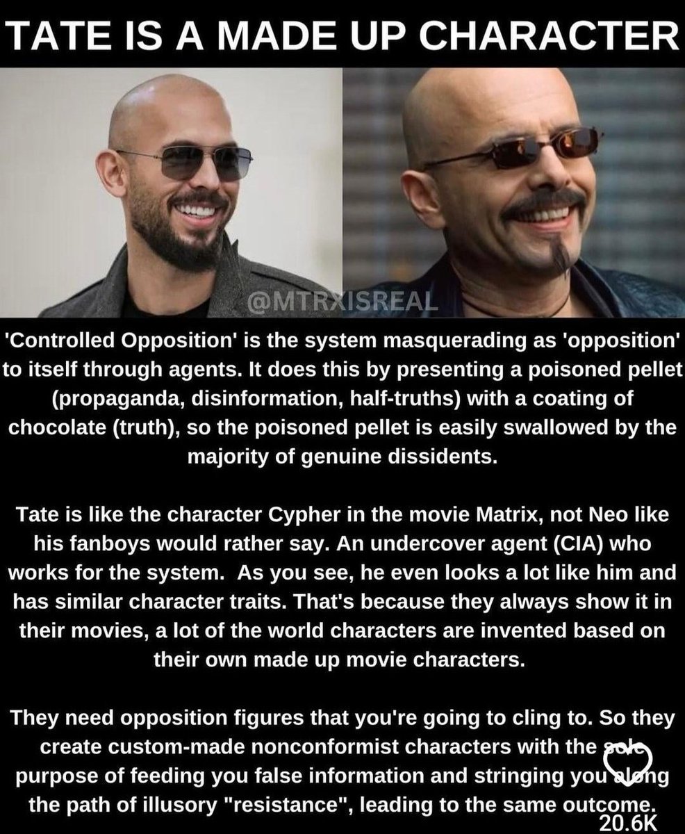 Hence, Tate speaks in mantras: “Escape the Matrix” “Destroy the Slave Mind” “Top G". These are not just slogans, they are sigils.