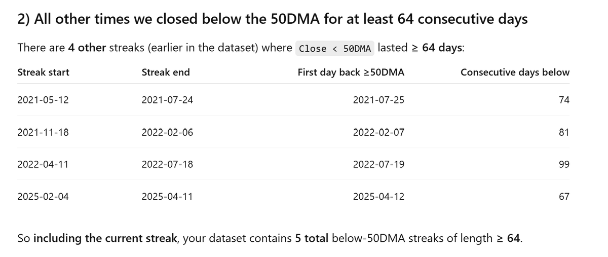 📉 Extended periods below the 50DMA (≥64 days):