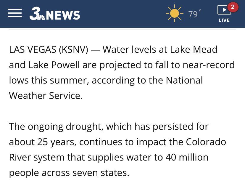 2) When you add the much lower snowpack runoff to the drought, and then add a predicted hotter summer, it’s going to plummet fast. Lake Mead already is. I don’t see how they’re going to be able to keep Mead and Powell both. Let’s see more⬇️