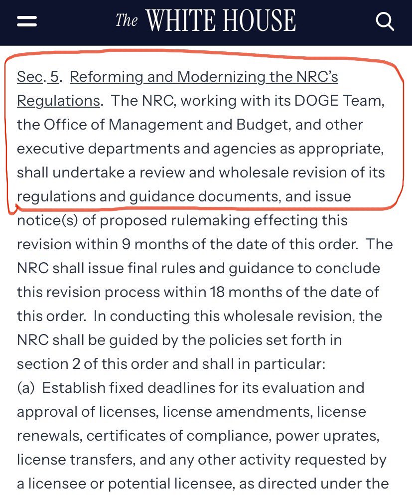 1) I had a look at Trump’s absolutely radioactive garbage of executive orders regarding nuclear power. So, who is going reorganize the Nuclear Regulatory Commission? DOGE is. What could go wrong? I mean, it’s only safety of nuclear power plants. Let’s see more⬇️