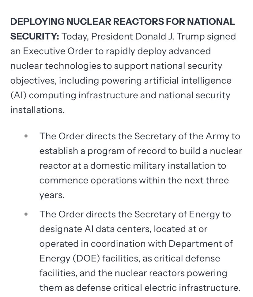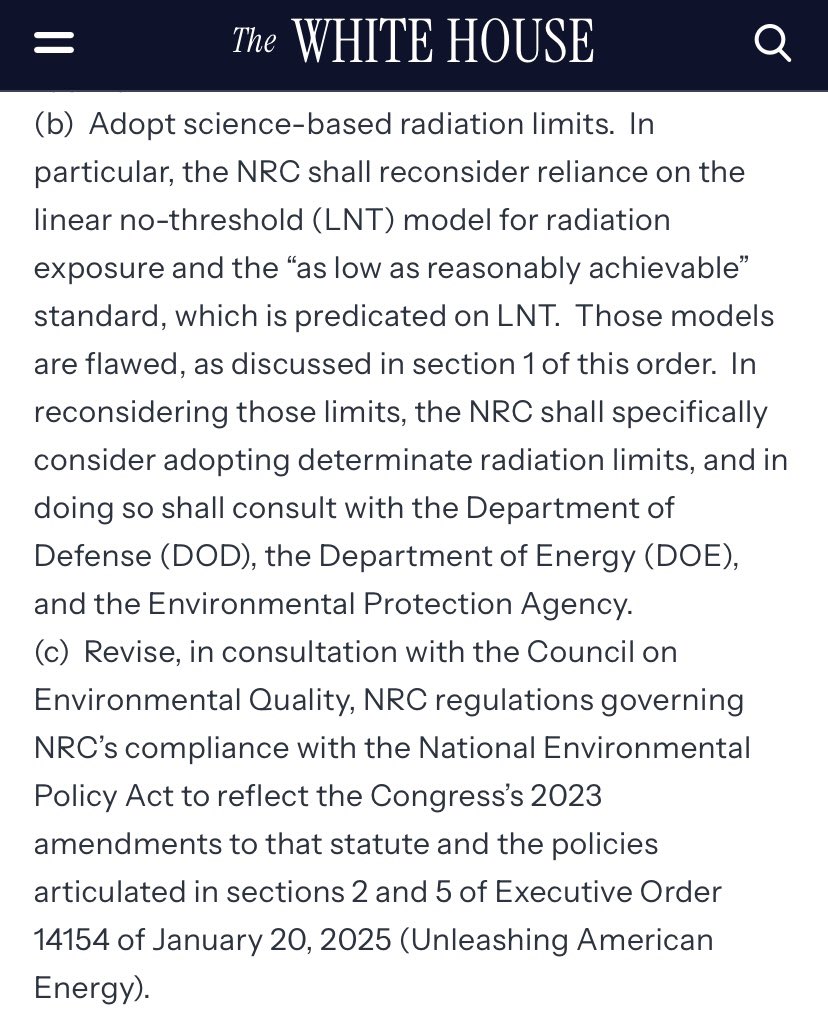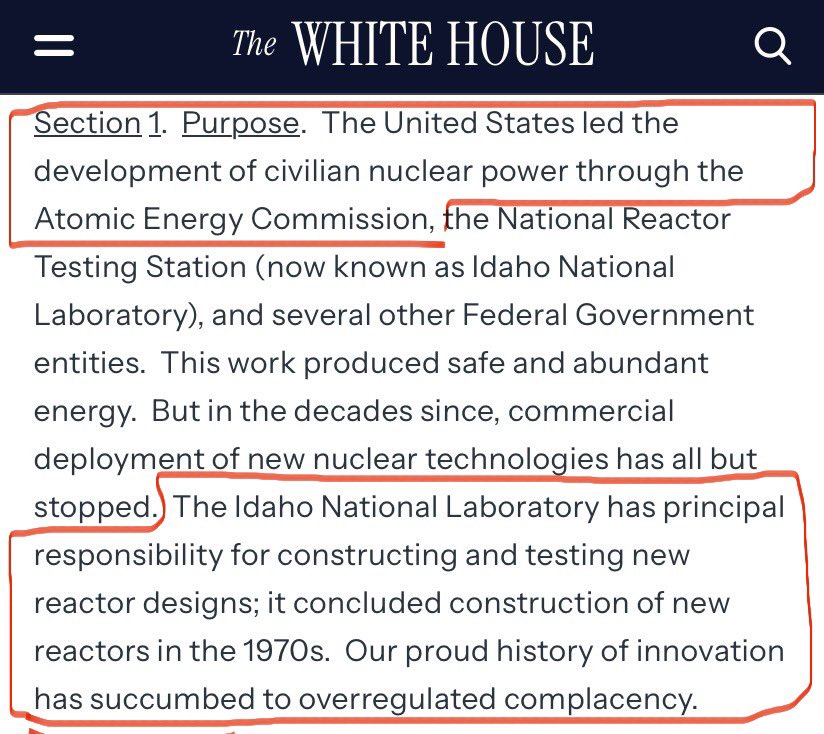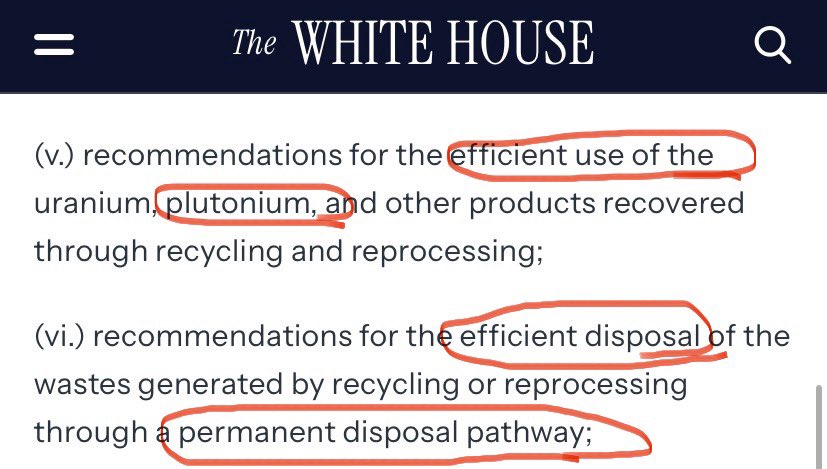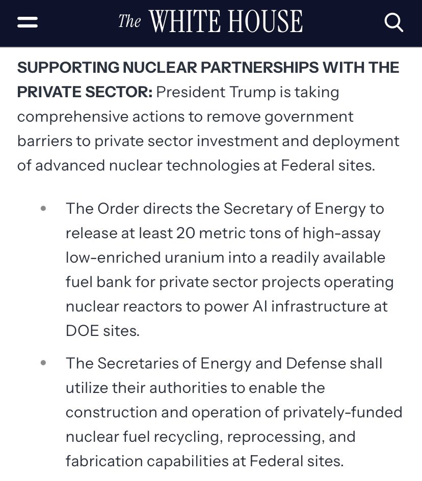 3) Yes, why not let the private sector have access to nuclear materials more than they already do? What are the “government barriers” the White House is referring to? Well, to find out, we need to see the actual executive order. Let’s see that next⬇️