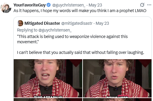 To mother Jocelyn Brooke Christensen, you clearly love your boy and it appears you work/ed in mainstream media at CNN and as a journalist so surely you understand the power of incessant propaganda, hate speech and lionizing far-left extremism via TV and social media content. Your boy has built a platform of millions of followers where he daily dehumanizes Jews, Israelis and even Christian "Zionists" as Nazis. What would Jesus say about his actions?