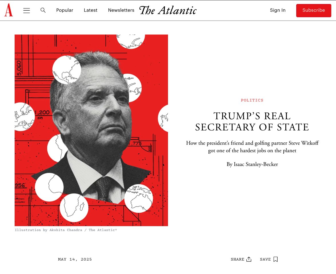 به طور خاص در مورد ویتکاف، به نظر میرسد که برغم اینکه وی فردی متعامل است که خود را ذوب در ترامپ میداند و گاهی به دلیل مواضعش مورد انتقاد اسرائیلیها و لابی اسرائیل بوده به سرعت توسط لابی اسرائیل در حال مدیریت شدن است. به این فراز از گزارش نشریه آتلانتیک با عنوان «ویتکاف، وزیر امور خارجه واقعی ترامپ» دقت کنید: