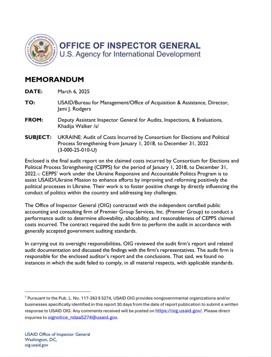 There is also something very off about this auditing company. Keep in mind the USAID OIG was fired. Probably for selecting who audited what. This Premier group seems to take on all the ones at the end of Bidens admin or right at the beginning or Trump. Almost like they are trying to clear all the dirty players. They never find anything wrong and… I’m pretty sure they have a funding line that is way off. Paid by Biden’s office under a drug trafficking program? Having said that. How they are paid for what is speculation the dates match. And the other contracts are more specific. The fact that Premier and a few other auditing firms seem to be the main ones popping up for USAID is interesting. They also never sign the name of who does it. Also. USAID’s credit card audit. The one the DOD found millions of improper payments. USAID. Zero apparently. Not buying it.