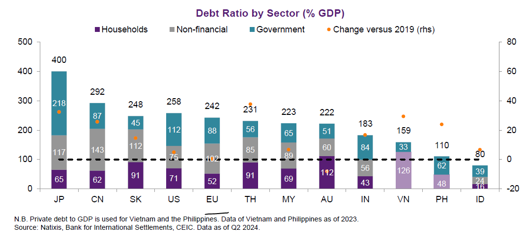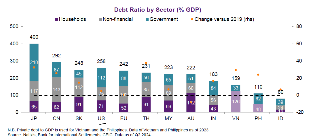 Who is the biggest debt of them all? Well, Japan. It is also the biggest creditor to the world (lending money). Japanese debt is unique in that because of weak private sector, the government has been just expanding like crazy because the households and corporates just sit on savings.