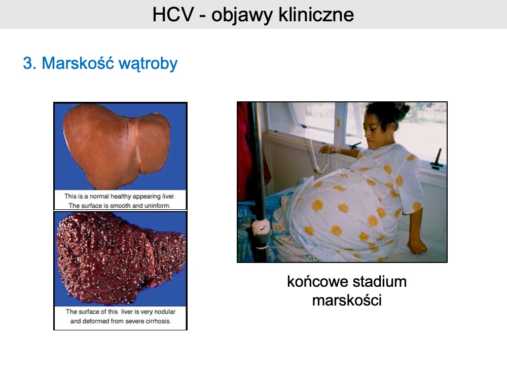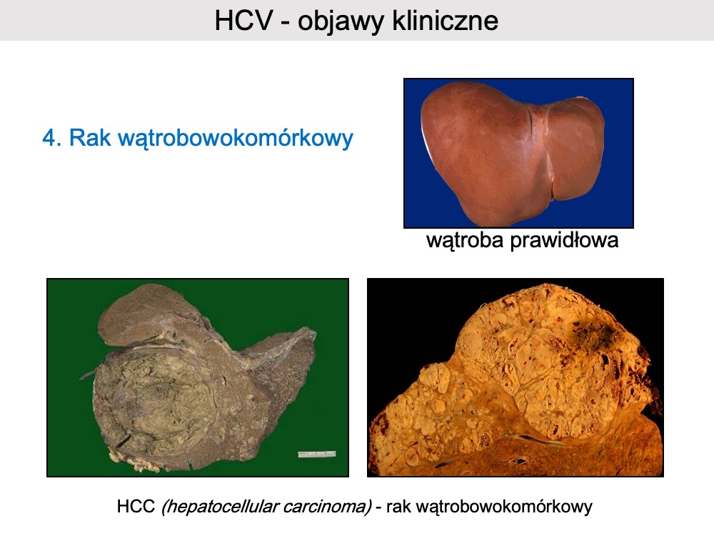 Konsekwencją infekcji HCV jest marskość wątroby (u 20% zainfekowanych) i rak wątrobowokomórkowy (u 5%).