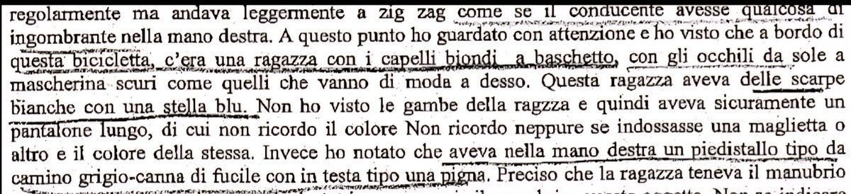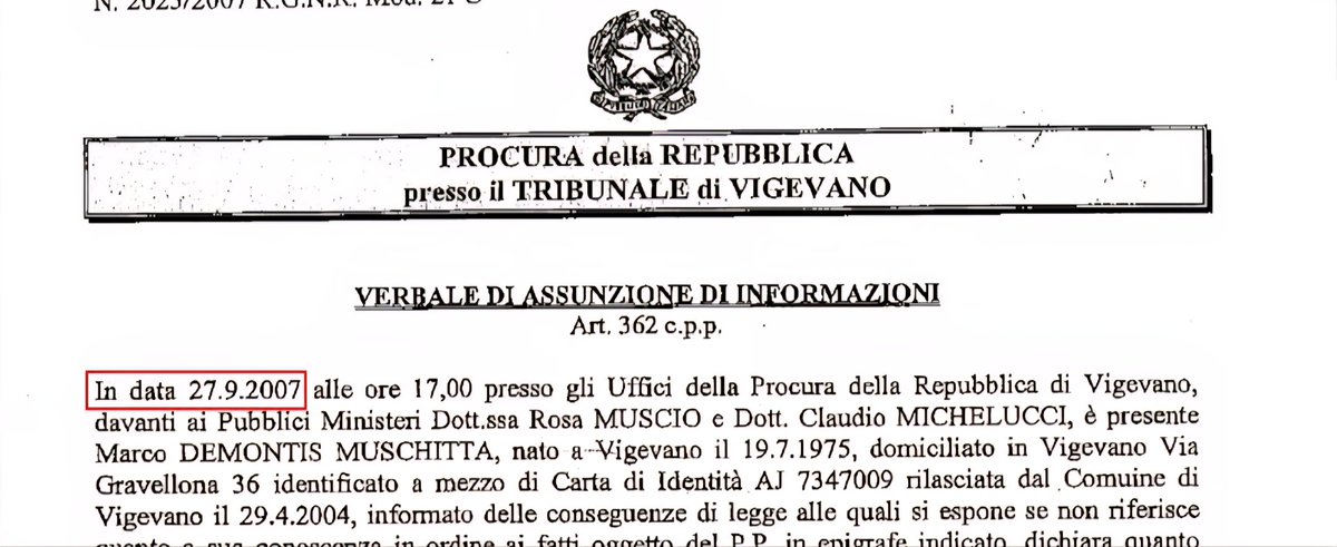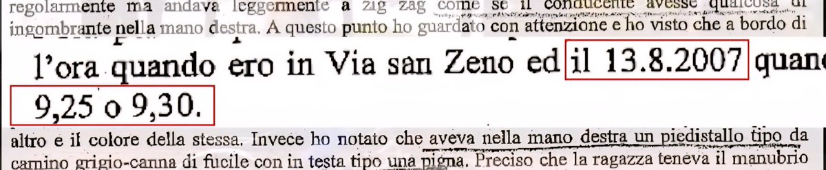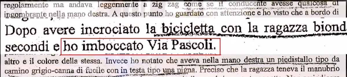 È il 27 settembre 2007, le date sono importanti!, 45 giorni dopo l'omicidio e #MarcoMuschitta si presenta spontaneamente in Procura e racconta, racconta, racconta per ore di aver visto una ragazza in sella a una bici nera da donna tra le nove e trenta e le dieci