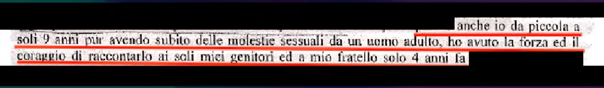 10/dichiarazione, facendo un acrobatico parallelo tra il suo comportamento a 9 anni e quello di Chiara a 26, aggiunge senza un motivo plausibile: Anche io da piccola a soli 9 anni, pur avendo subito delle molestie sessuali da un uomo adulto, ho avuto il