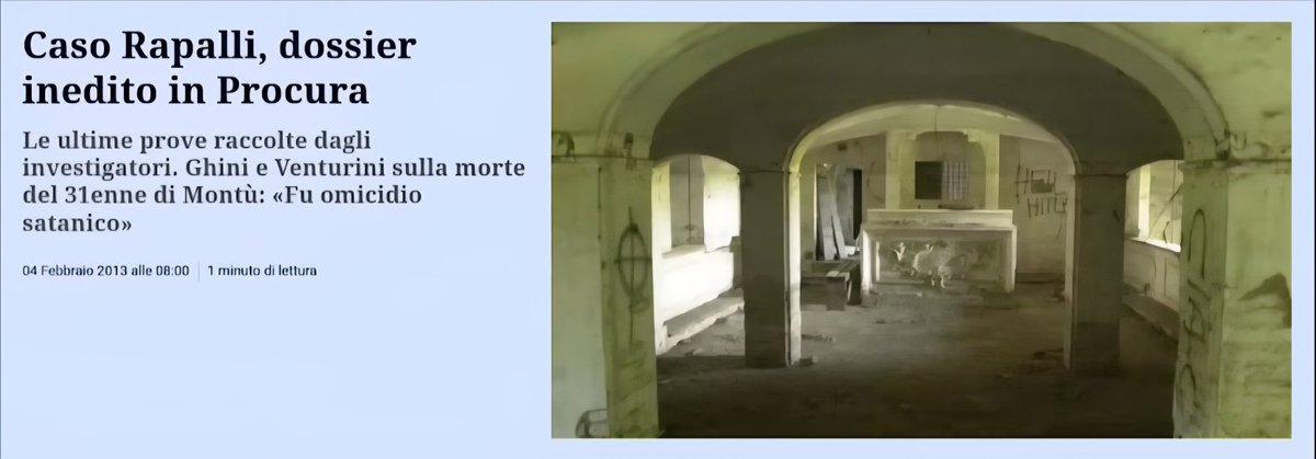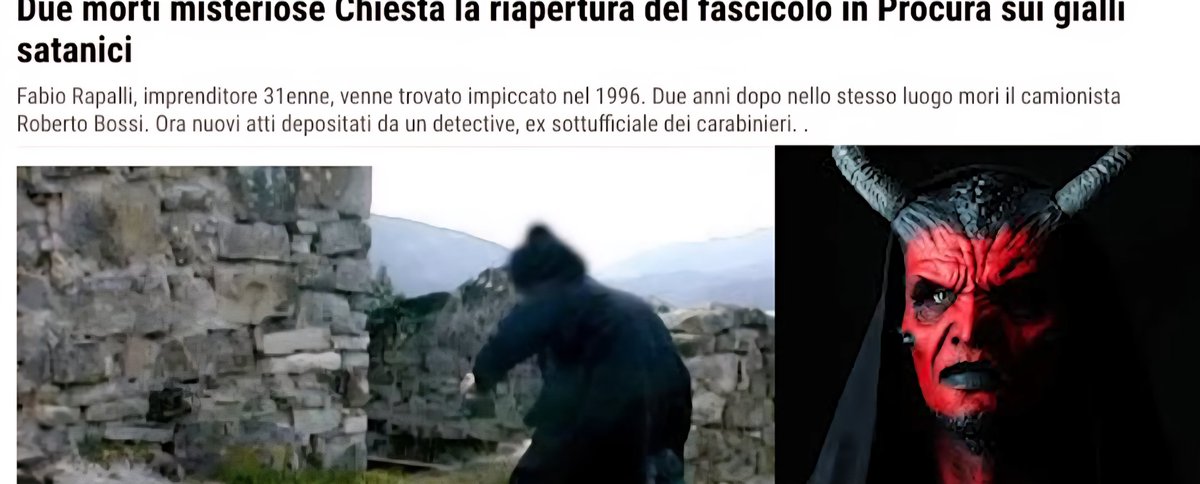 18/dove la setta aveva una base nella frazione di #CostaMonteFedele, proprio la frazione dove abitava un altro giovane #suicidatosi nel 1996, #FabioRapalli, che condivideva interessi esoterici con un altro ragazzo, #RobertoBossi, che viveva poco distante, morto anche lui in
