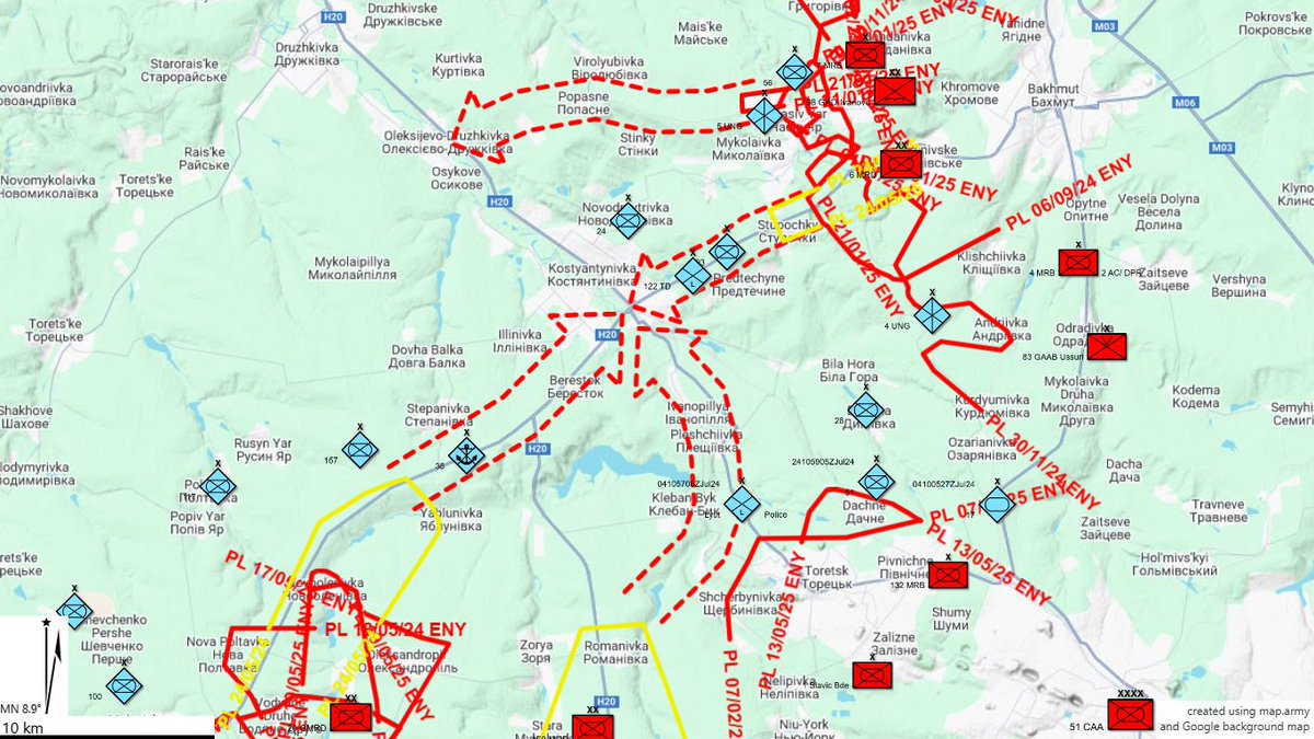 Comando Operacional Sur: Stupochy (24/05) y Romanivka (25/05) y se encuentra combatiendo en las afueras de Yabluniovka lo que deja a Konstantinivka cercada por tres lados y hace difícil la defensa de Chasiv Yar.