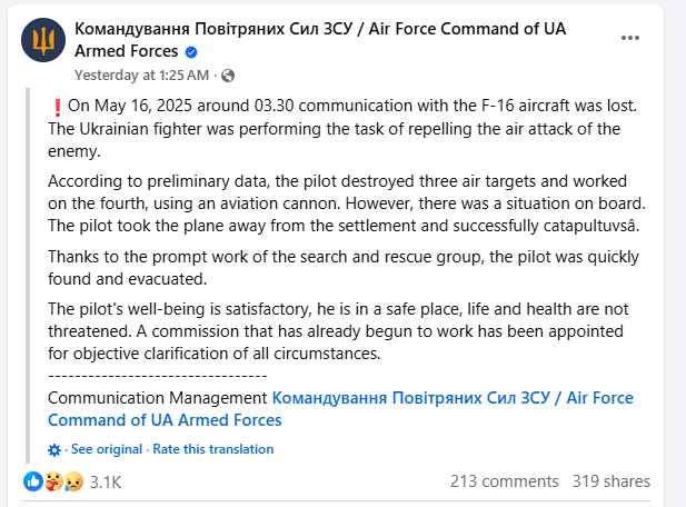 Dominio Aeroespacial: me olvide de ponerlo en el último resumen, pero los ucranianos perdieron otro F16