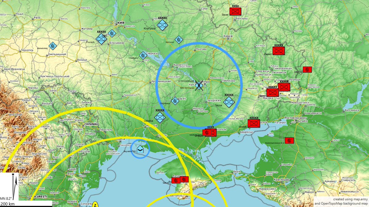 En el Dominio Aeroespacial, Rusia se encuentra desarrollando una Ofensiva Contra Aérea al este del Dnieper, destruyendo sistemas de defensa aérea, bases aéreas y aeronaves, logrando la superioridad aérea en esa zona mientras disputa la misma al oeste del citado río.