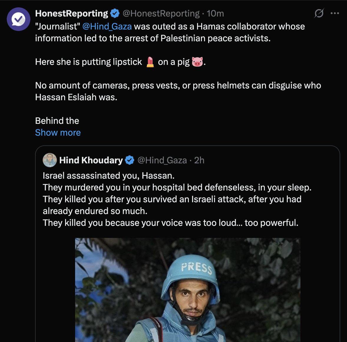 3\ The pro-Israeli rag that put a target on Hassan's head is now going after another prominent Gazan journalist, Hind Khoudary