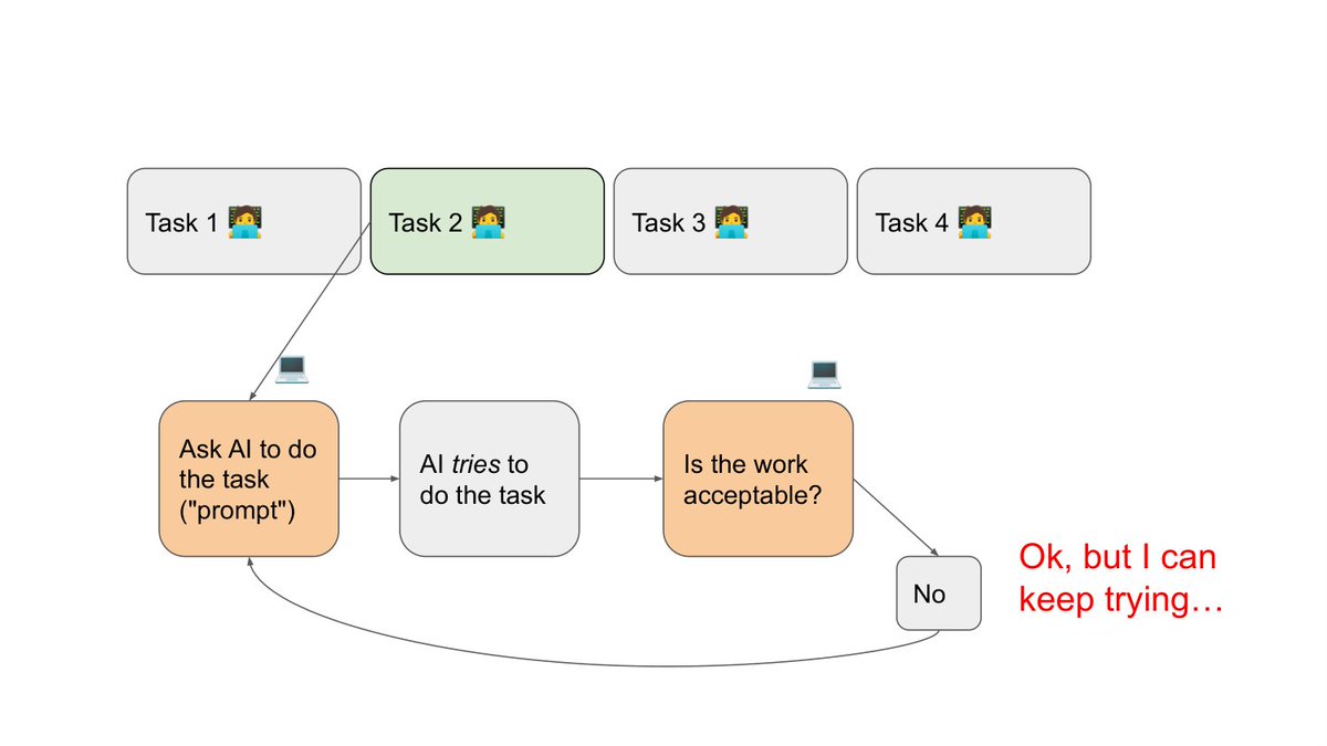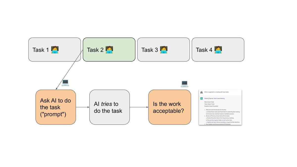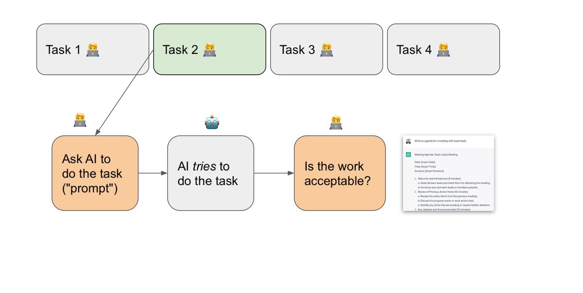 I wanted to do a thread about how I've been thinking about Gen AI & production. So, imagine a job that's a sequence of tasks to be done 1/n