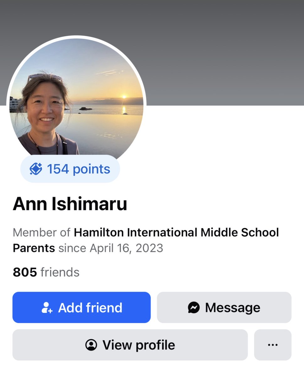 Ishimaru is getting the word out through the Hamilton International Middle School Parents Facebook page.