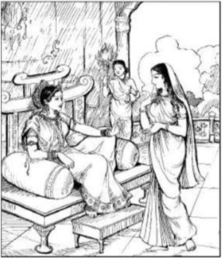 Sudeshna was still hesitant. She expressed her concern to Draupadi. She was worried about the men in the palace falling for her beauty. Draupadi assured her that she did not worry about that since she was protected by her five Gandharva husbands.