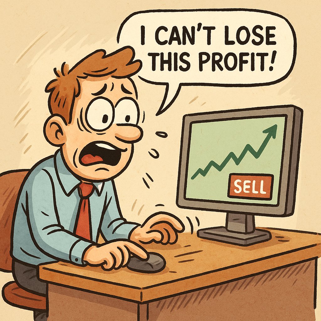 Thinking this way, many people break their rules and take profits too early, even though according to the rules they should still be holding positions with unrealized gains.