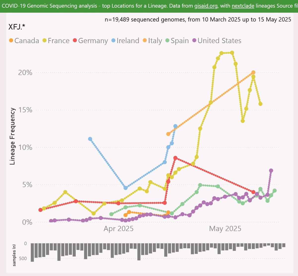 The earliest XFJ sample was reported from Germany, in mid-March.