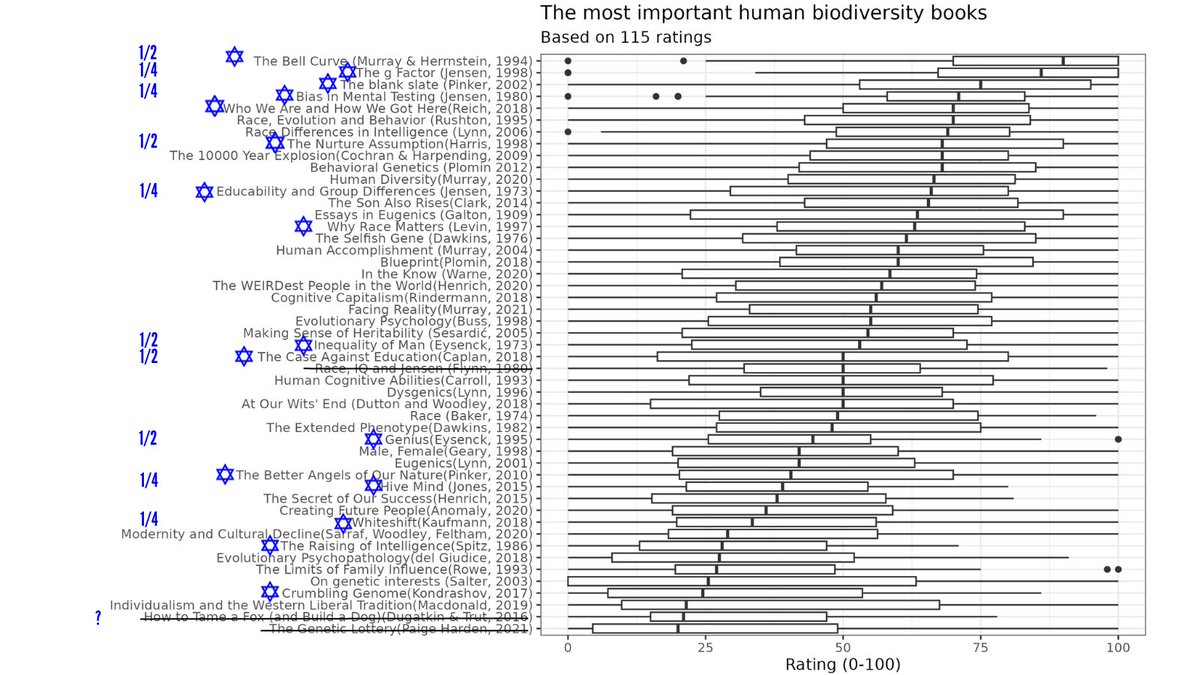 Contrary to the popular belief of Jews mainstreaming Anti-Hereditarian research people with Jewish ancestry were found to be behind 37% of the most acclaimed Hereditarian books on Race and IQ.