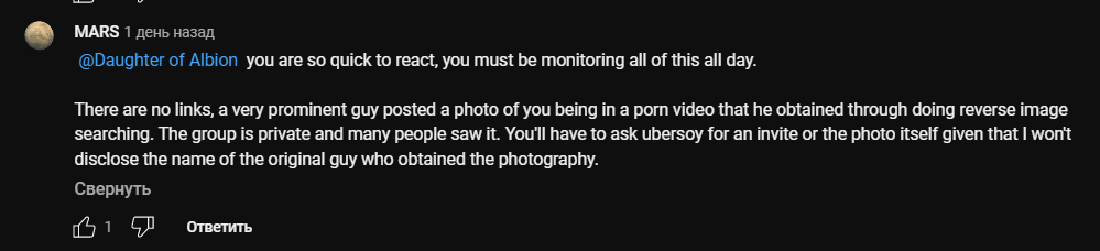 Learning that, she made a libelous or perhaps an overreacting claim that I am a BBC fetishist who makes porn with her photos from HNH in White extinction groups. This is absolutely not only false but also a lie. I did not do that, and she has 0 evidence to support her claim.