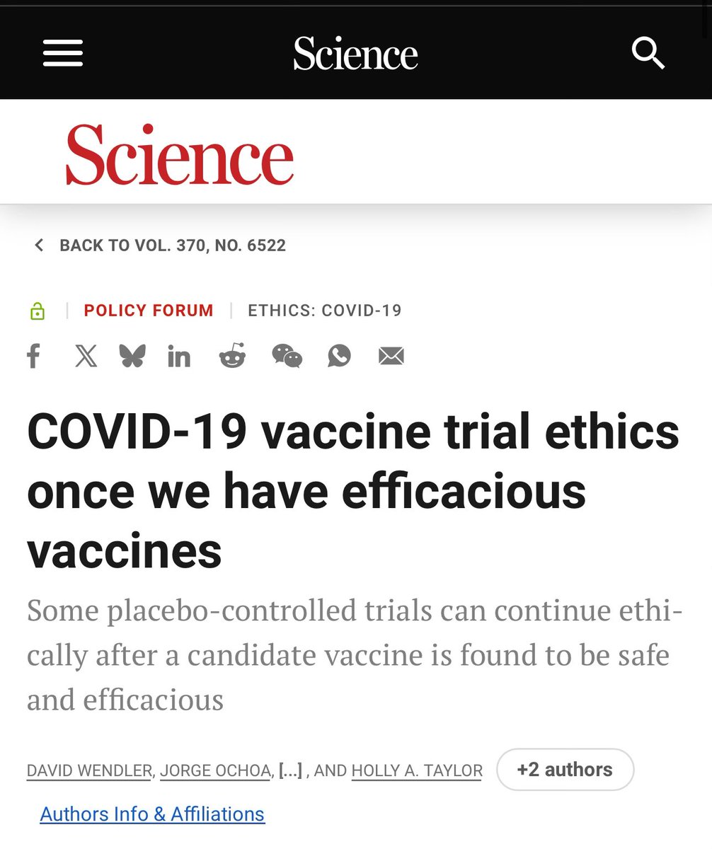 So you’re saying it’s unethical to compare a new vaccine to nothing because you’ve already approved one… based on incomplete, rushed trials?