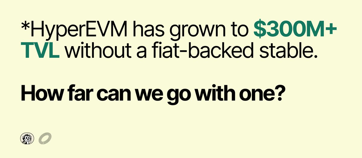 Without a unified fiat stable, Hyperliquid relies on bridged USDC on HyperCore (the orderbook environment) and relies on CDP stablecoins on the EVM (which work suboptimally without being paired with an EVM fiat stable).
