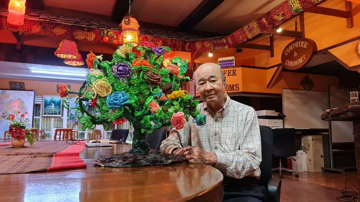 Here is Viravaidya posing proudly with a tree made out of... Guess what? 3/9