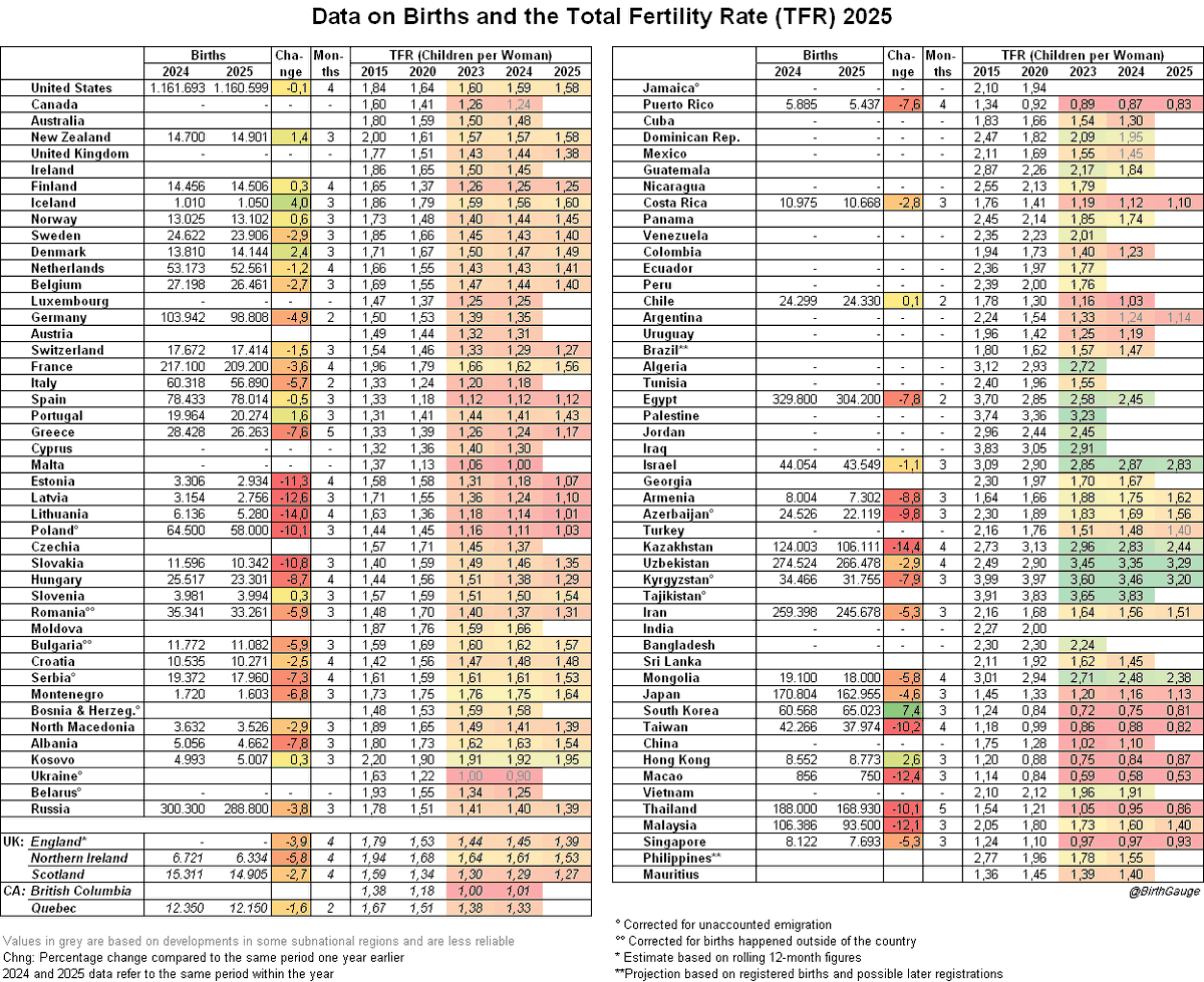 In fact, yesterday @BirthGauge (a must-follow account) released new fertility data, based on the latest 2025 reporting by national governments.
