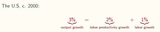 Output growth is just productivity growth times workforce growth. Even if productivity keeps growing at 2%, a shrinking workforce means that GDP growth would average just 1% instead of 3%. 5/8