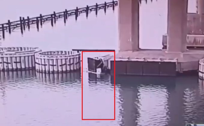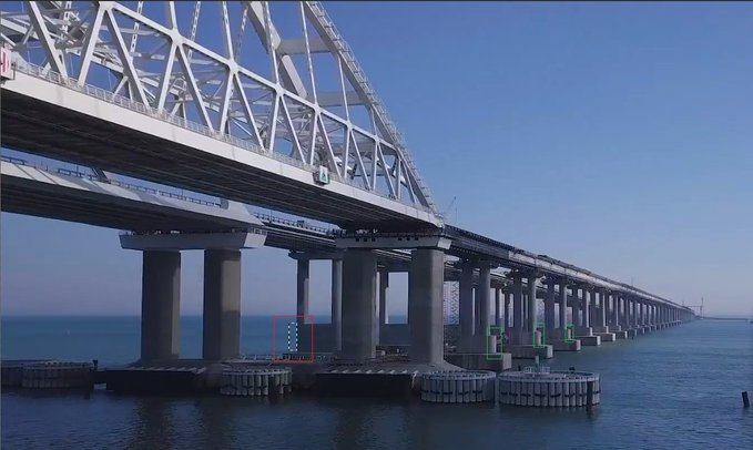 2/ There were two (!) confirmed explosions and at least one sea drone intercepted by a Russian Lancet combat drone. The attacks targeted the railway bridge and its supporting underwater structures.