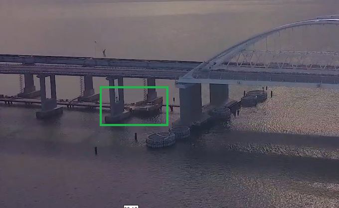 2/ Es gab zwei(!) bestätigte Explosionen sowie mindestens eine durch eine russische Lancet-Kampfdrohne abgefangene Seedrohne. Die Angriffe richteten sich gegen die Eisenbahnbrücke und dort gegen deren tragende Unterwasserstrukturen.