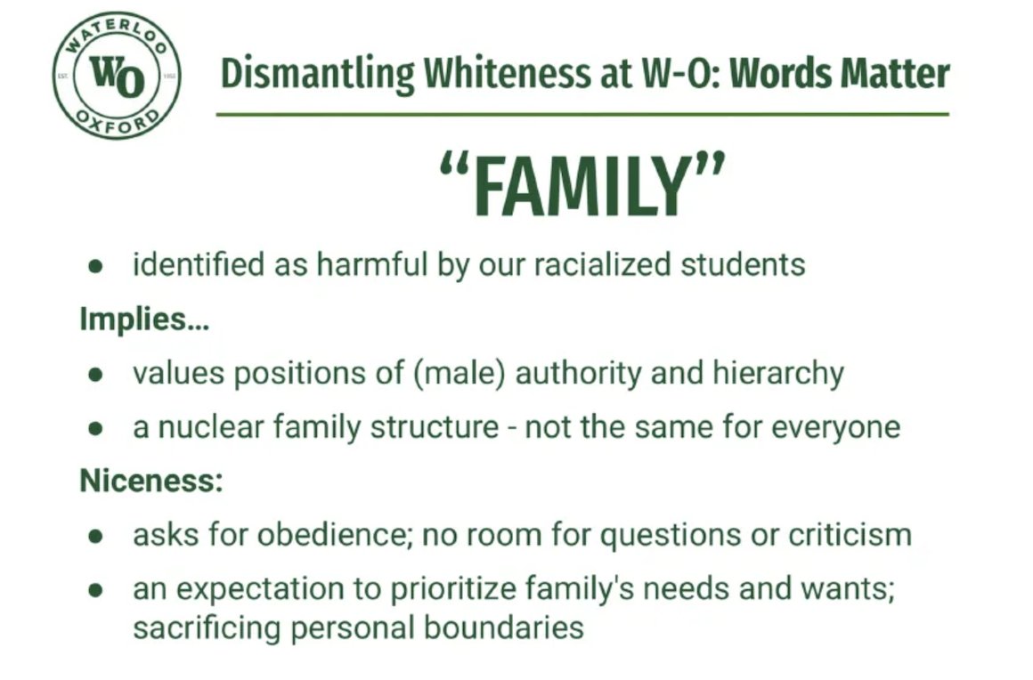 "The word family is a harmful concept rooted in white supremacy" says the Waterloo Region District School Board.