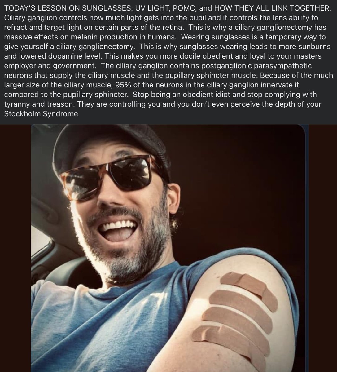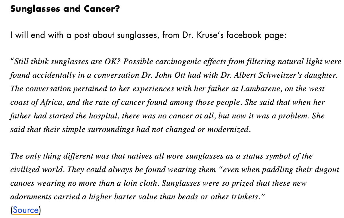 That is how sunglasses give you cancer. Just as my blog said it does. Be careful who packs your parachute folks.
