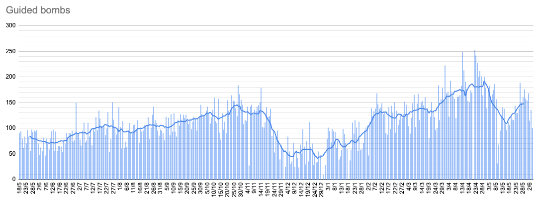 Since january 2025, the number of FAB bombardments by Russia has not ceased to grow, with around 150 everyday !