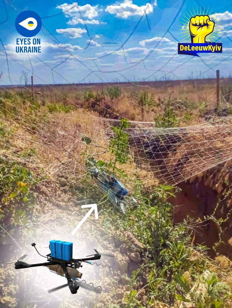 The solution ? Anti-drone nets to cover the main supply roads and artillery positions such as this one :